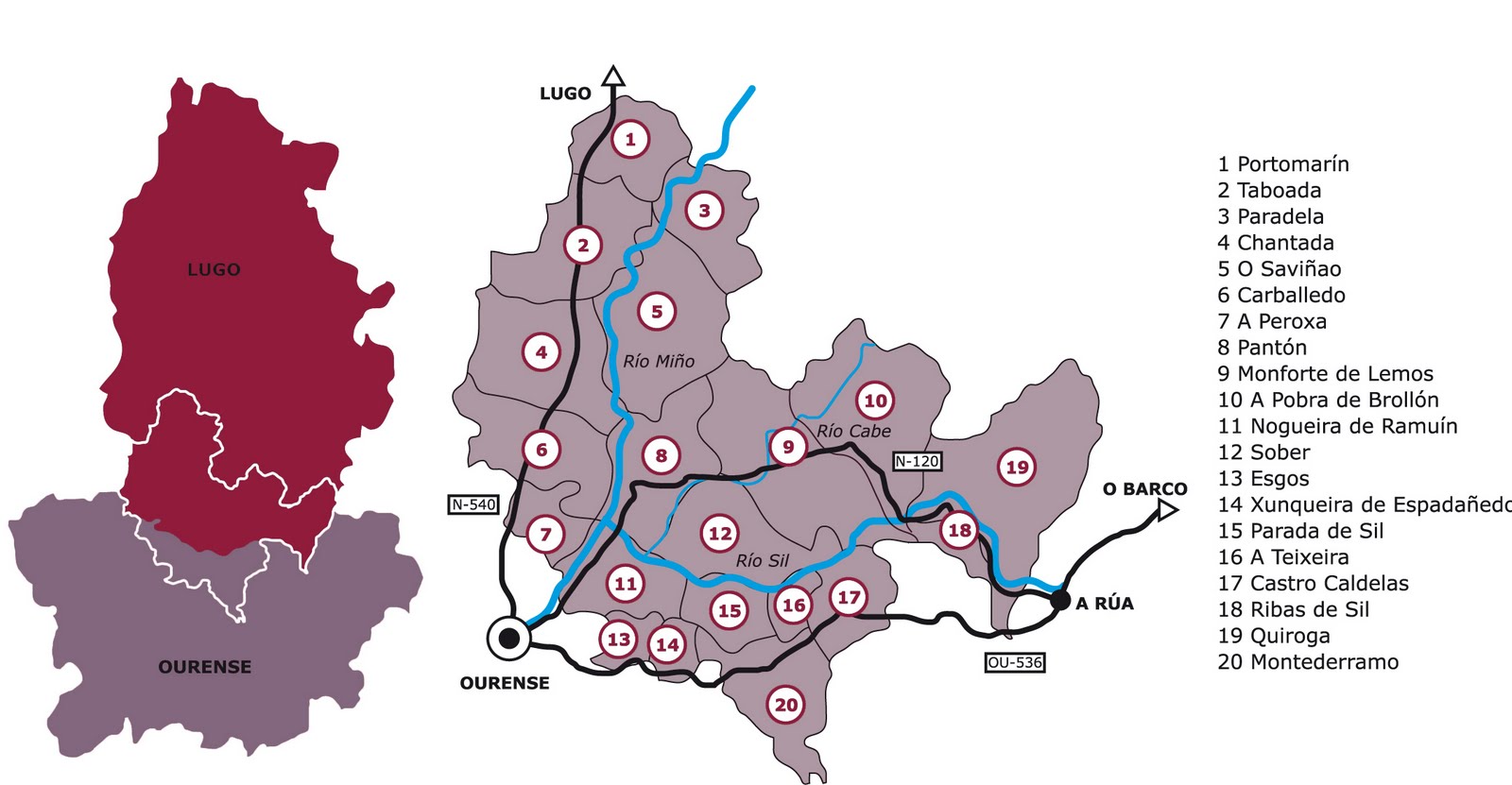 | Mapa de los municipios de A Ribeira Sacra. © Nerea Otazo. |