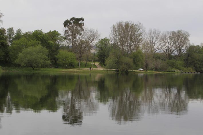 El paseo nos lleva río arriba por el tramo entre el viejo puente internacional de Tui y las dos islas portuguesas de Cu do Porco. Discurre plácidamente sobre las mansas aguas del Miño y en una atmósfera con olor a tierra húmeda. Las tonalidades de verdes denotan la variedad de especies arbóreas que jalonan ambas orillas. No hay un solo claro en el bosque hasta la playa de Areneras (Guillarei, Tui), situada frente a la segunda isla de Cu do Porco.