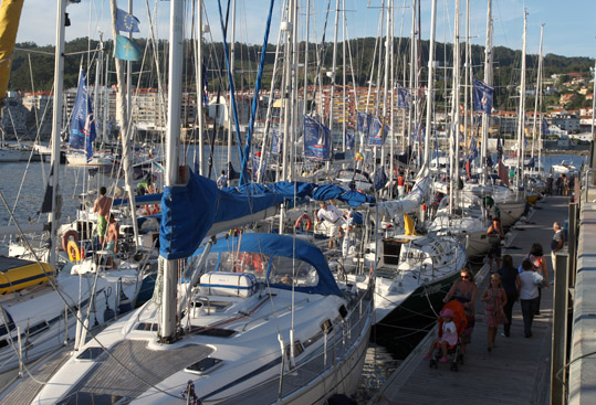 La etapa de hoy ha culminado en Sanxenxo, municipio turístico por excelencia de las Rías Baixas, en el interior de la ría de Pontevedra. El puerto deportivo del Real Club Náutico fue ampliado y mejorado para servir de base durante los entrenamientos de las tripulaciones de los barcos participantes en la Volvo Ocean Race de 2005, y presenta un aspecto inmejorable. A su alrededor se suceden las terrazas cubiertas y acristaladas de cafeterías y heladerías, las tiendas de moda, de náutica y de complementos. Por la noche, la zona se abarrota de paseantes bien vestidos que se detienen a admirar las lujosas y espectaculares embarcaciones de recreo. Pero ésta es sólo la cara del verano, cuando la población de Sanxenxo se multiplica vertiginosamente.